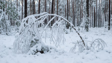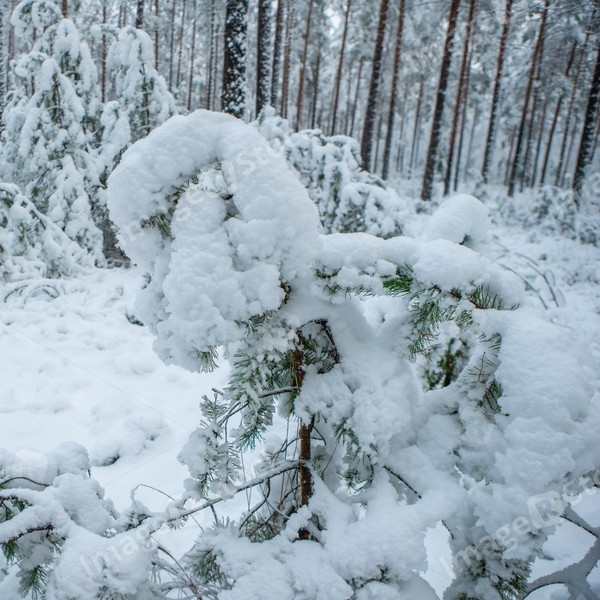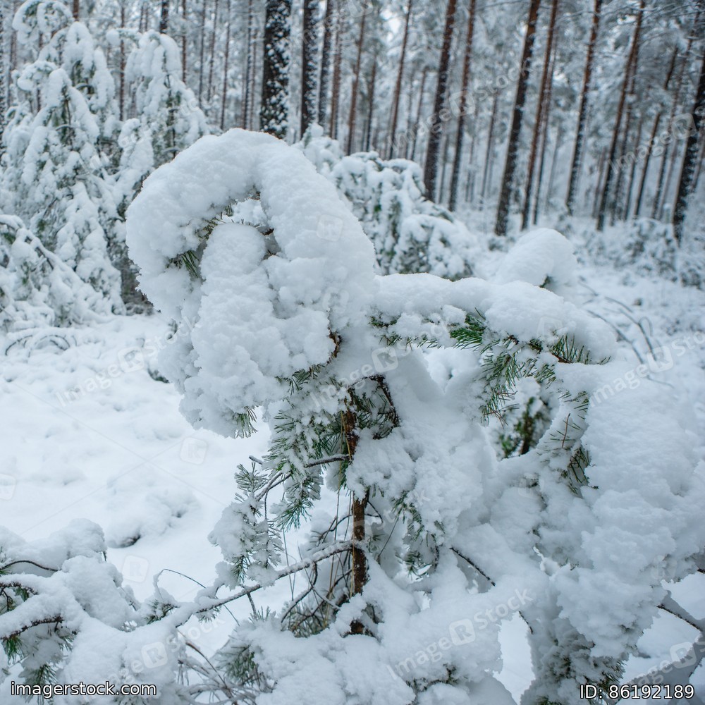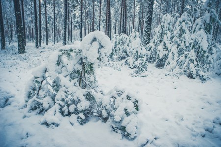 Beautiful winter landscape. Pine forest. Trees covered by snow