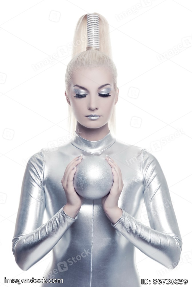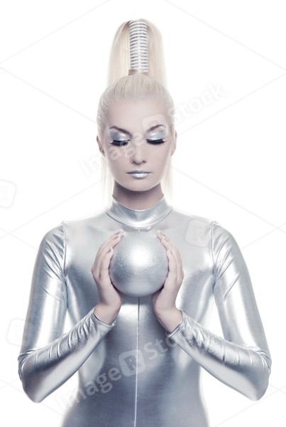 Beautiful cyber woman with silver ball