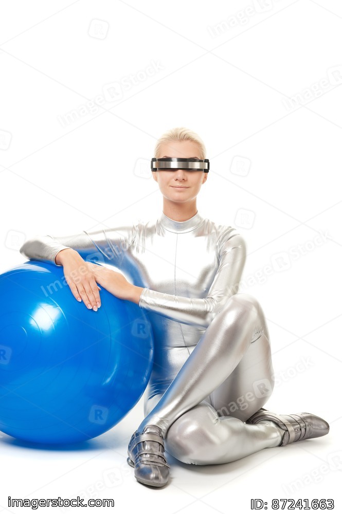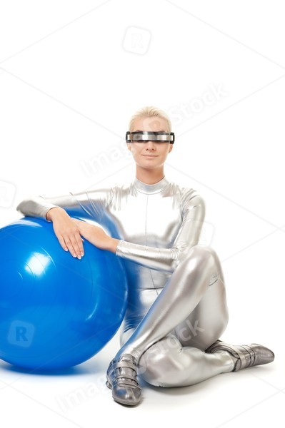 Beautiful cyber woman relaxing after fitness exercise