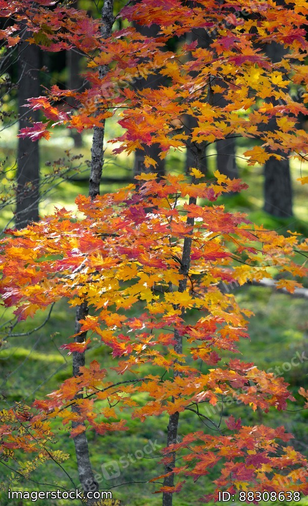 Red leaves on maple. Autumn nature. Beautiful landscape.