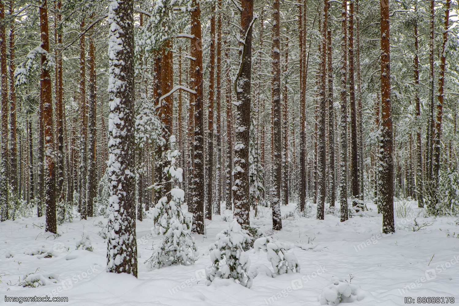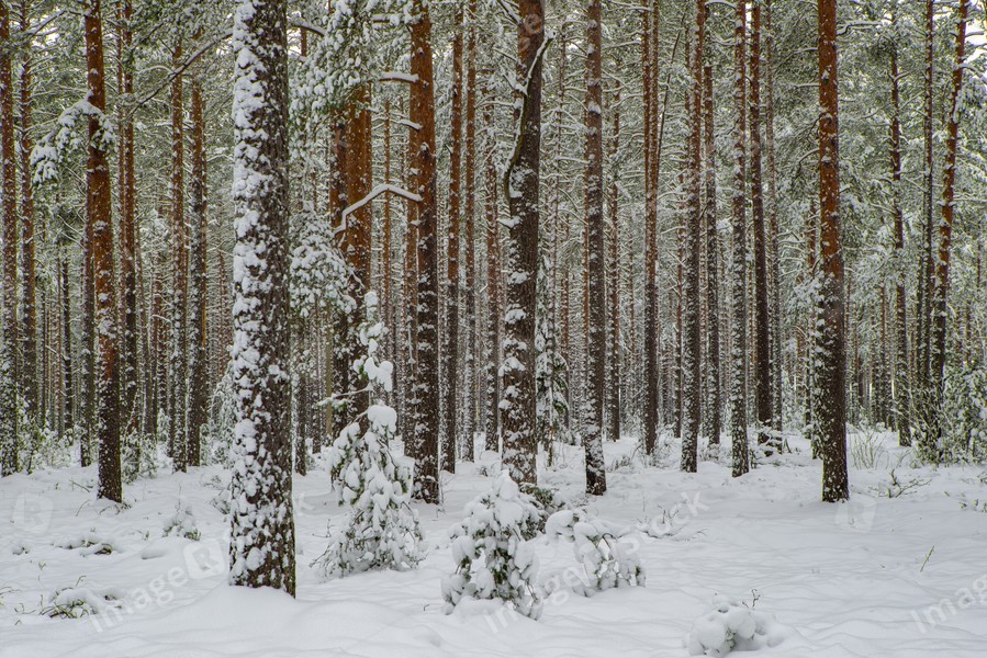 Pines covered by snow. Winter forest. Scenic landscape.