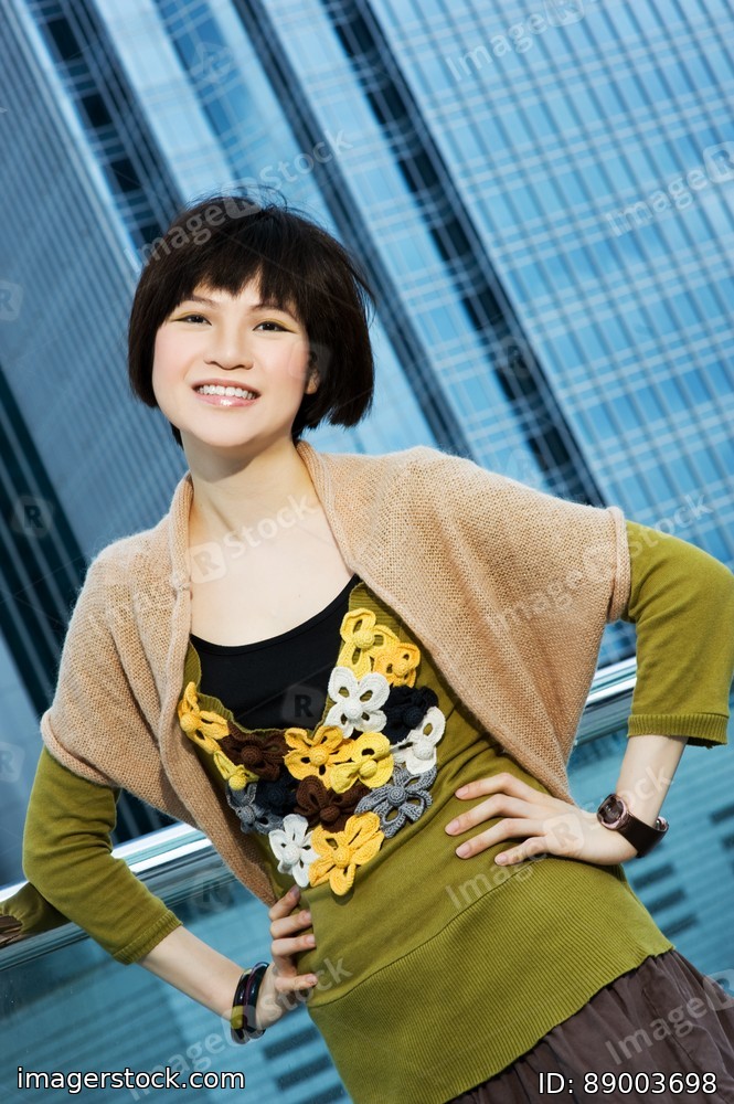 Beautiful chinese woman having fun outdoors