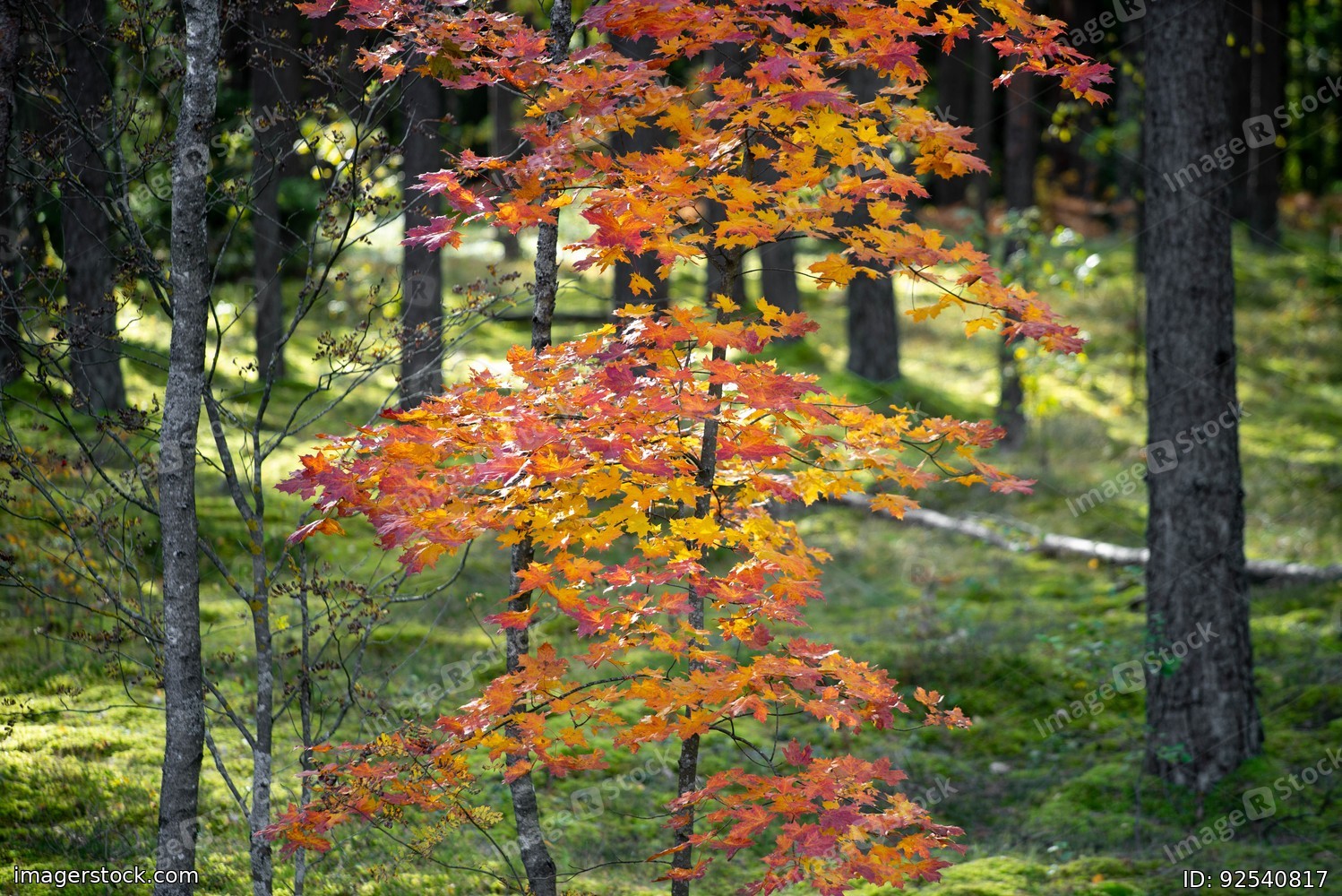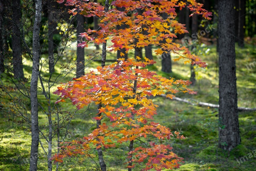 Red leaves on maple. Autumn nature. Beautiful landscape.