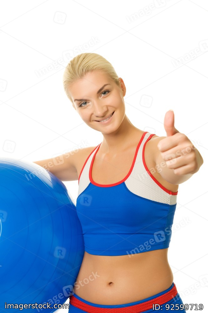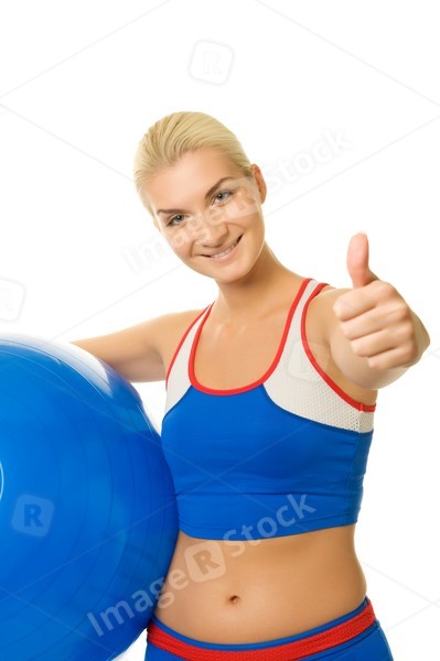 Happy trainer holding a fitness ball
