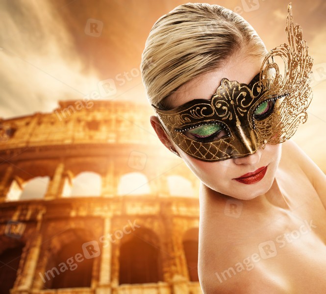 Beautiful woman in front of Colosseum (Rome, Italy)