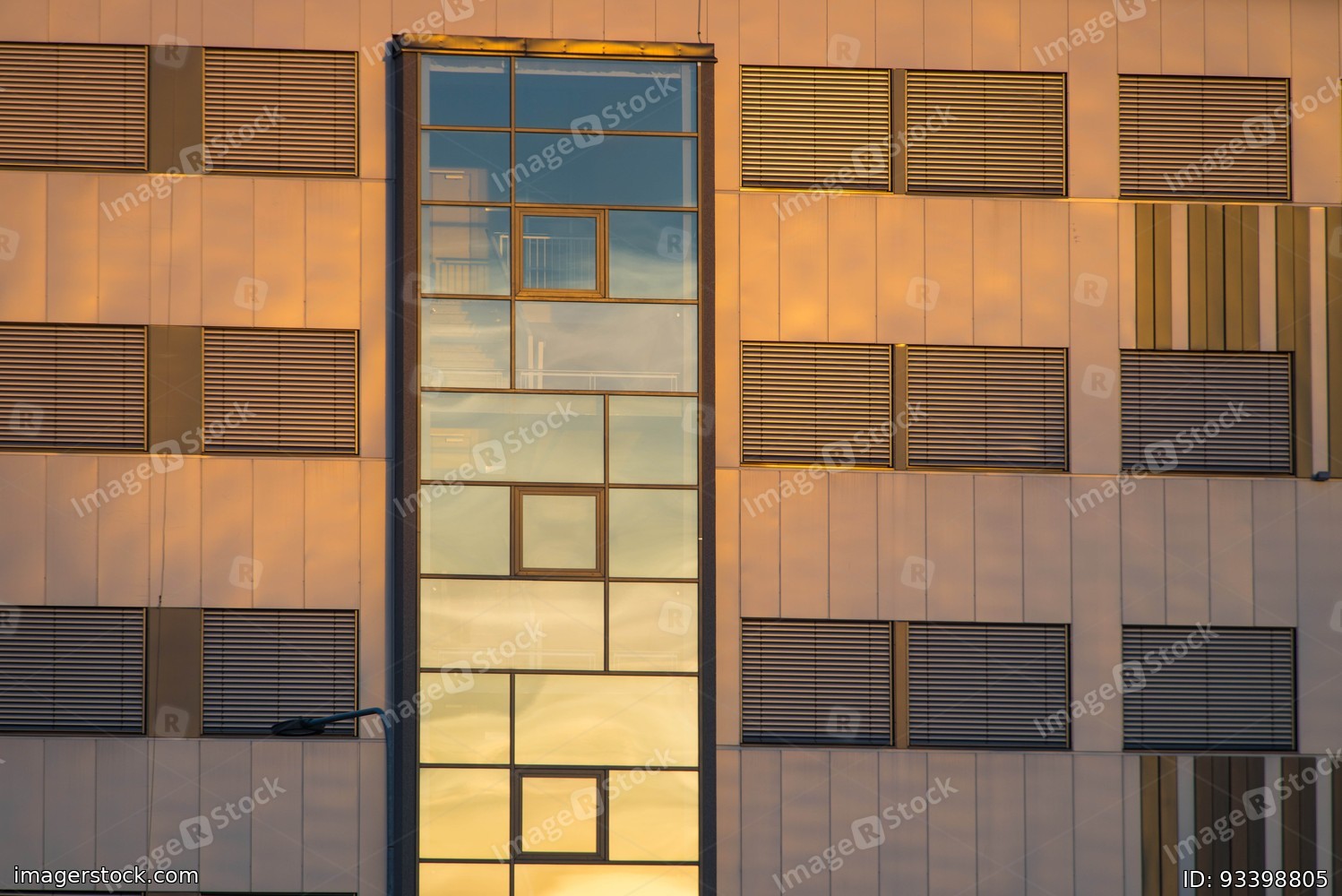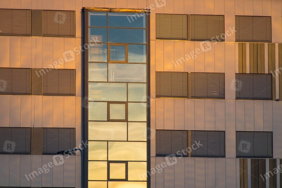 Wall of office building with closed windows. Modern exterior.