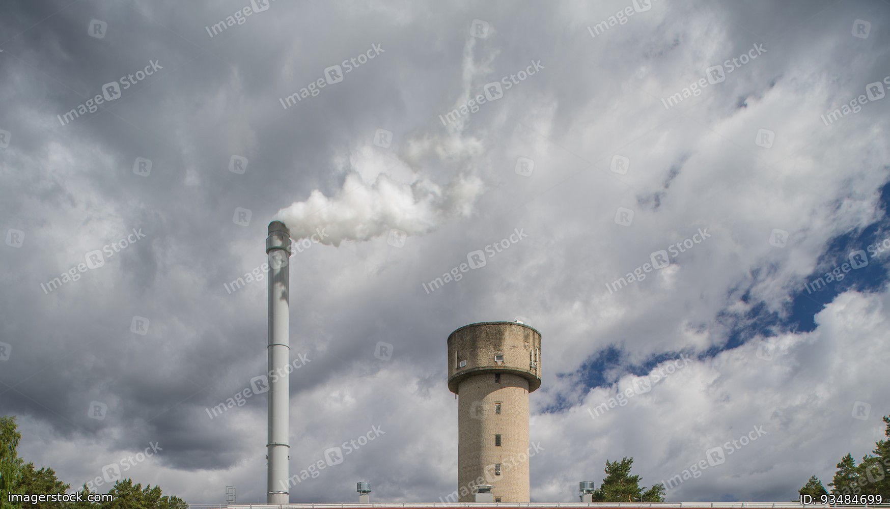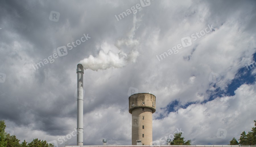 Modern boiler house. Smoke comes out of the pipe.