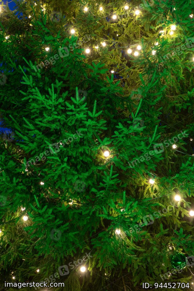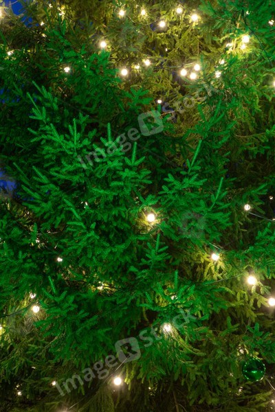 Beutiful illuminated Christmas tree close-up. Winter holidays