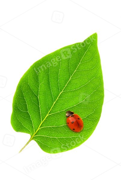 Ladybug sitting on a fresh green leaf