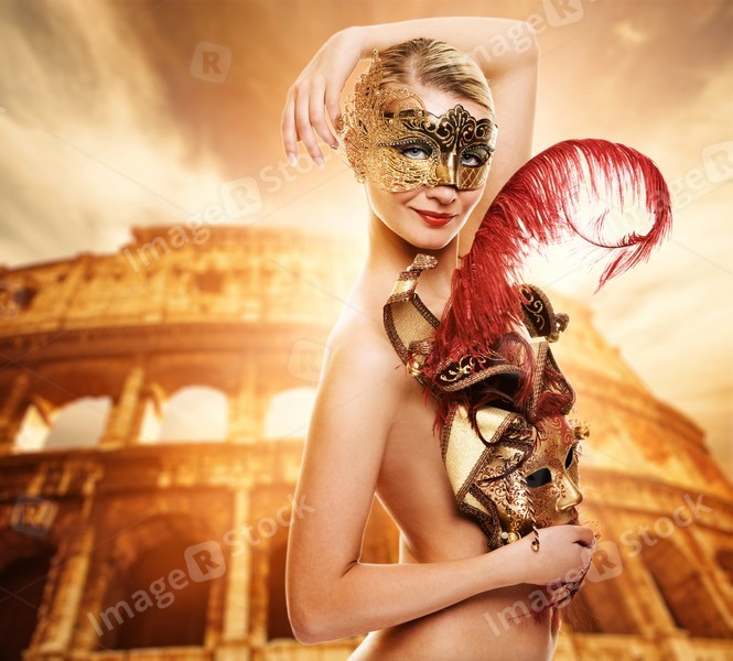 Beautiful woman in front of Colosseum (Rome, Italy)
