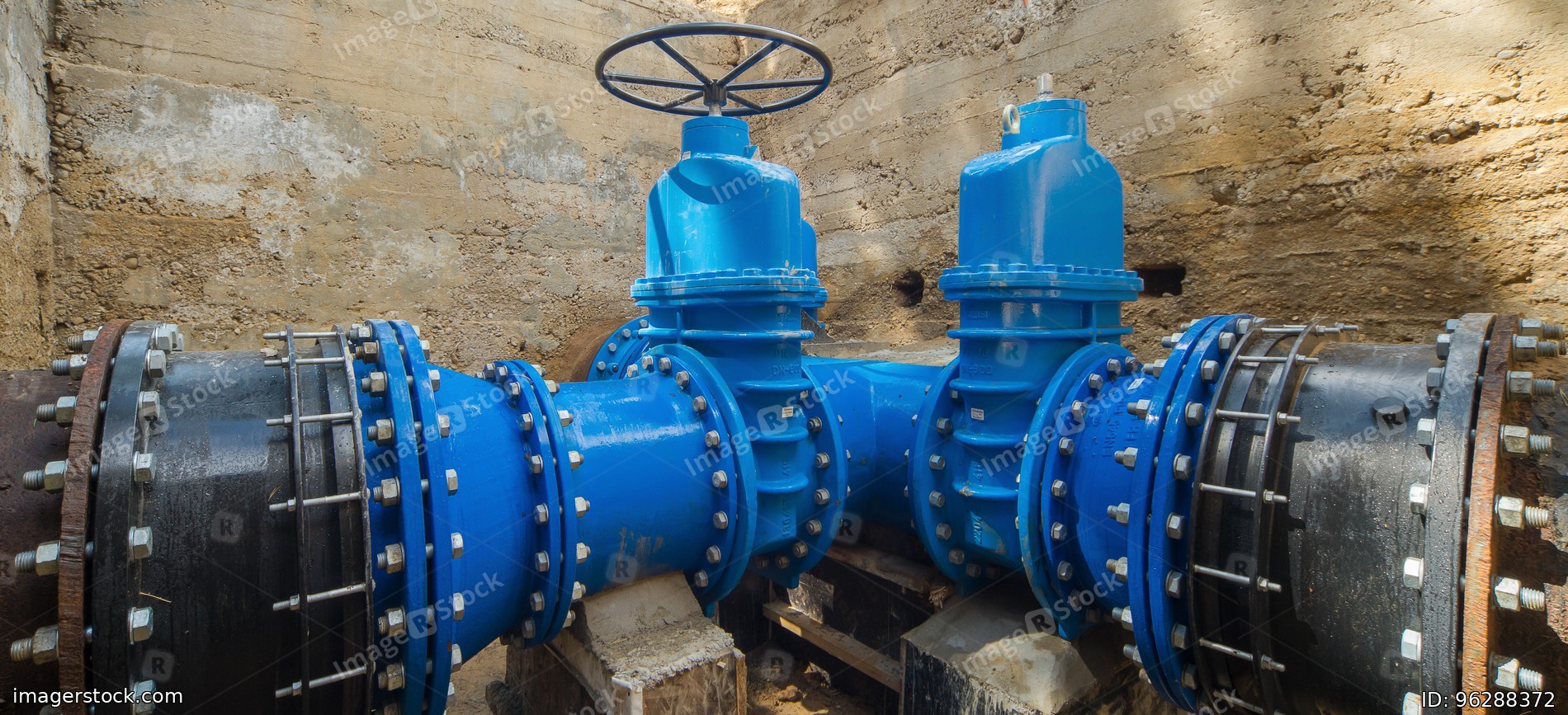 Underground water supply system. Large valves.