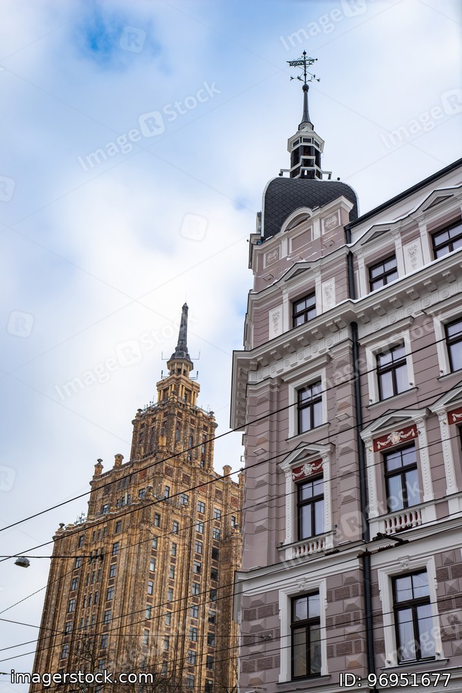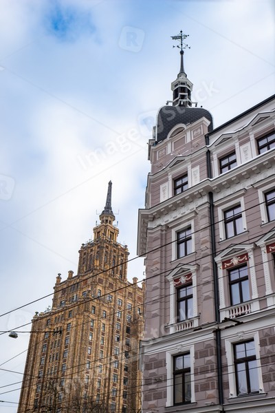 Winter cityscape of Riga. Modern architecture. Latvian Academy of Sciences