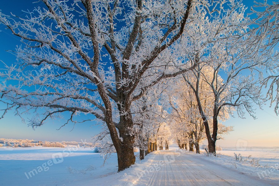 Winter landscapes, road, snow-covered trees,
