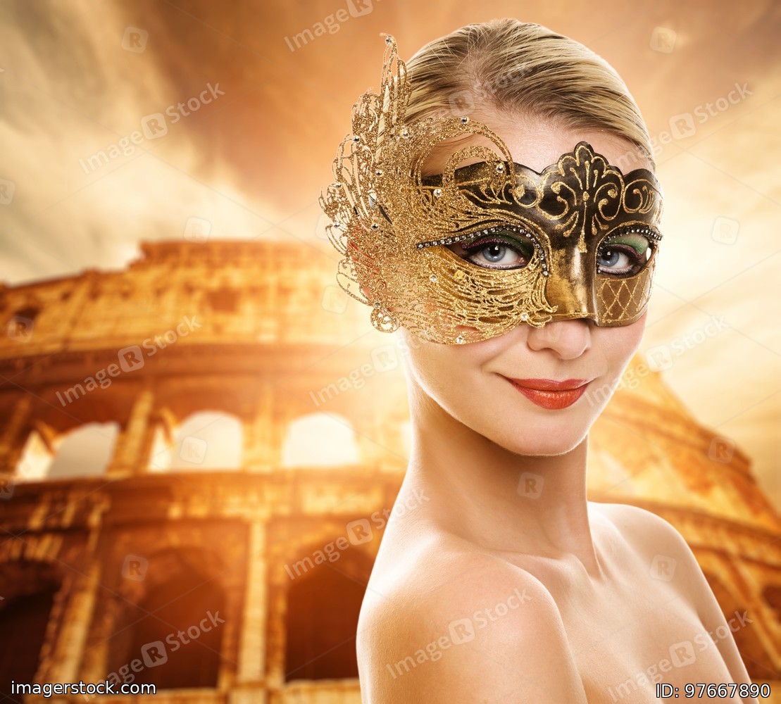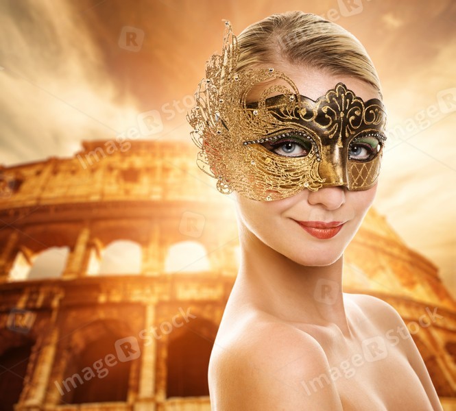 Beautiful woman in front of Colosseum (Rome, Italy)