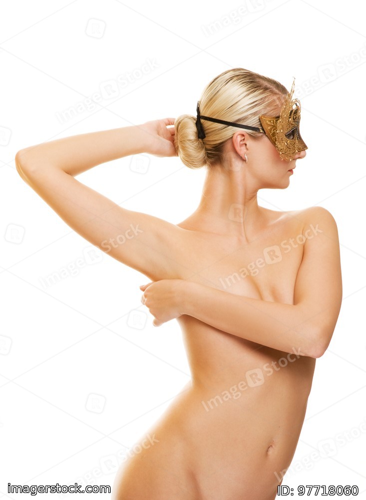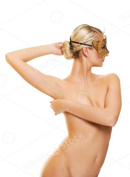 Beautiful young woman with carnival mask on her face