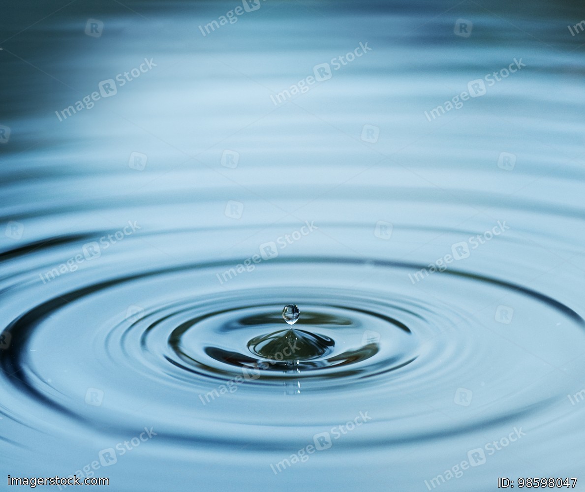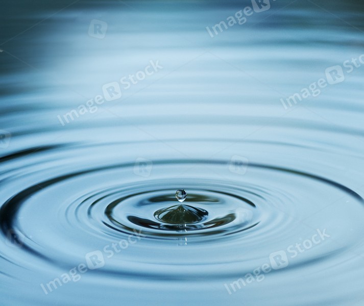 Droplet falling in blue water