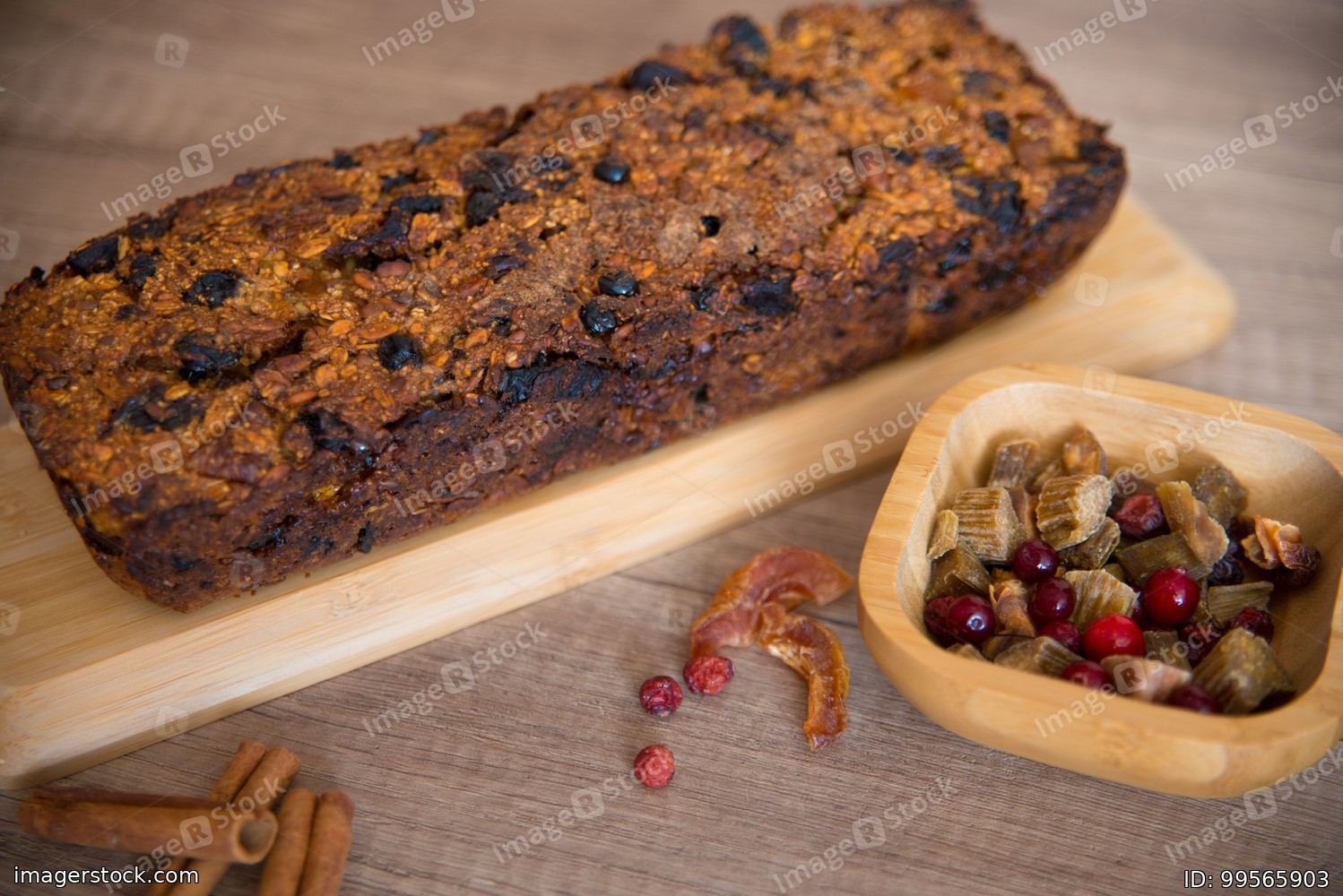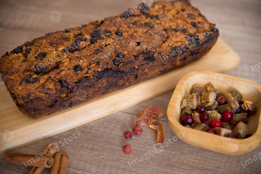Homemade fruit bread with cosy winter decorations