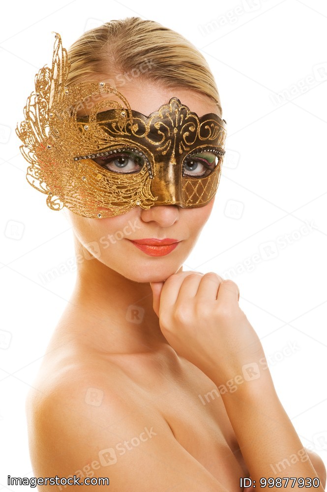 Lovely young woman with carnival mask on her face