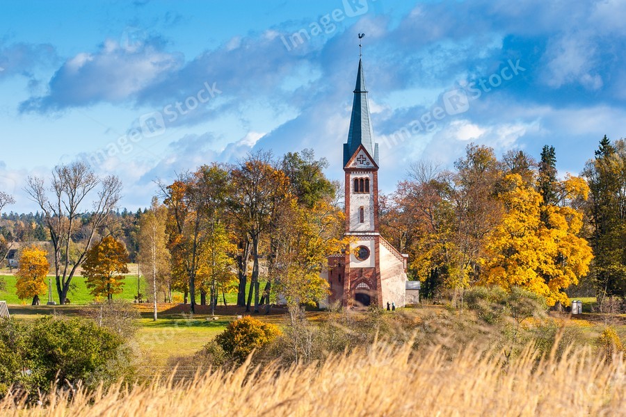 An old church in the countryside. Autumn time.